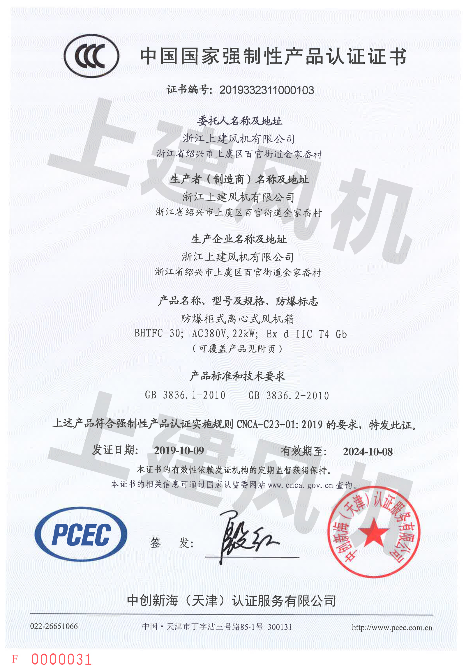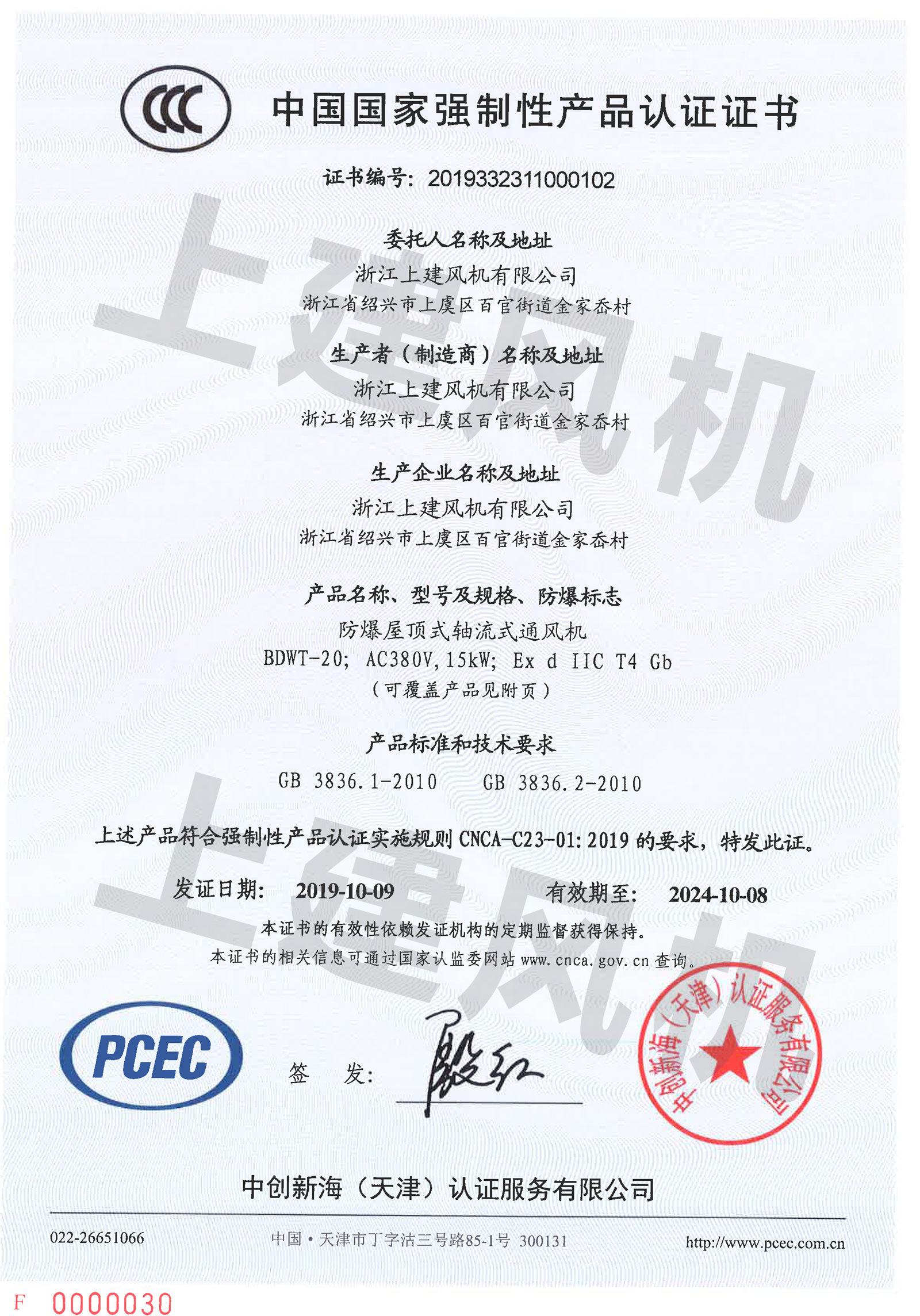 【BHTFC-30】防爆3C證書